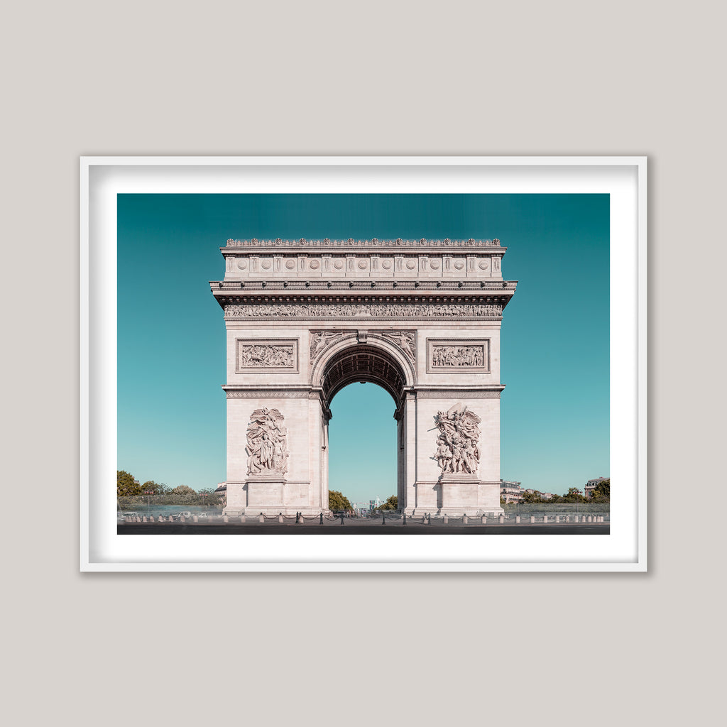 A timeless view of the Arc de Triomphe in Paris, France, captured in 2023. This evocative image features a retro 1970s-inspired colour palette. Commissioned in 1806 by Emperor Napoleon, this iconic monument remains one of the most celebrated landmarks in the French capital.”