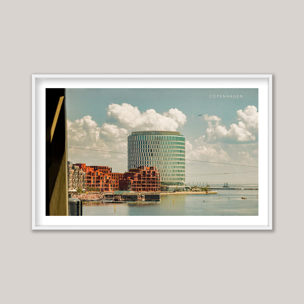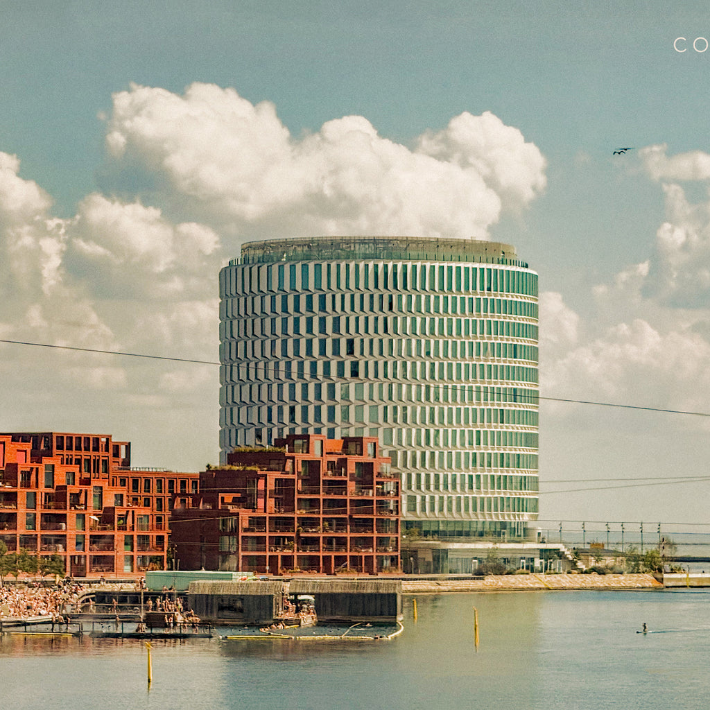 Tip of Nordø. Riding a train north from central Copenhagen, an unexpected architectural form appears along the coastline — clouds seem to billow from its centre. It is July, the hottest day of the year, and people gather below to swim and sunbathe in the sea’s sectioned bathing area. Tip of Nordø, a new addition to the Nordhavn district by Vilhelm Lauritzen Architects with COBE and Third Nature, a concise circular form - this image has a warm, modern vision touched with quiet nostalgia.
