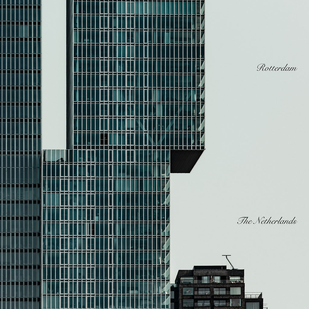 Photograph of De Rotterdam in Rotterdam, Netherlands. A vast structure, both abstract and minimal but extremely complex all at the same time. An intense structure of mixed use - Residential, Office, Hotel etc. The improbable juxtaposition of different levels are inspired and visually stunning. It was designed by OMA Architects (Rem Koolhaas). An interesting fact is that it has 160,000 m2 of floor space, making it the largest building in the Netherlands.