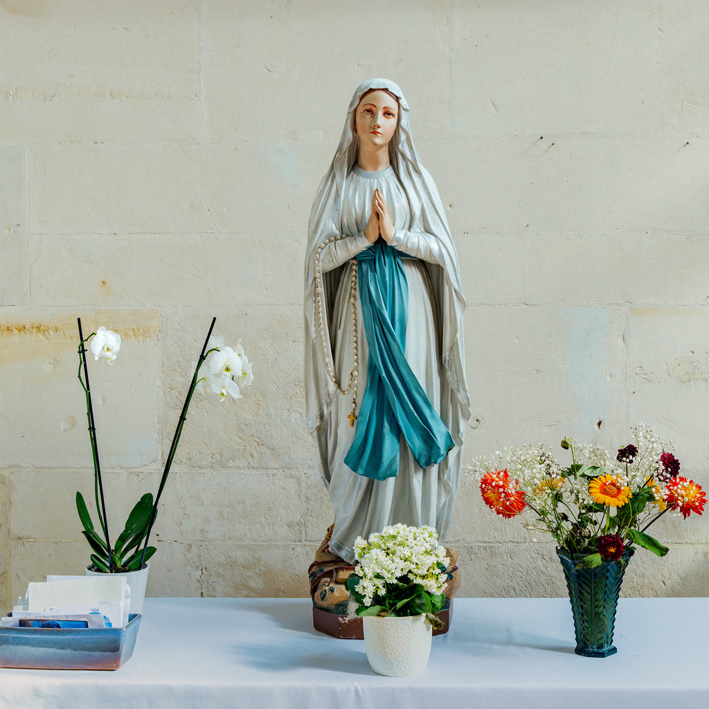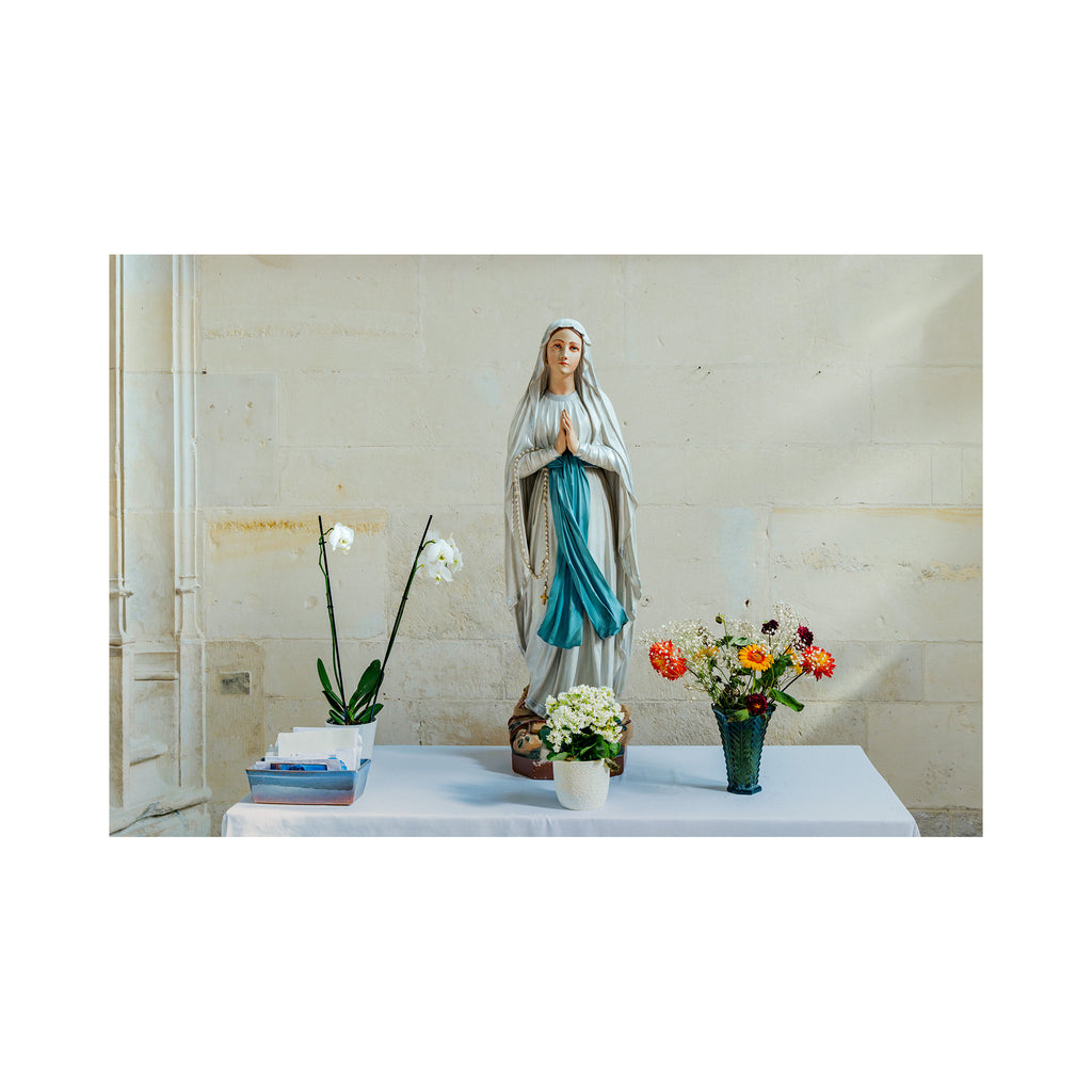 The Virgin Mary, bathed in glorious afternoon light, greets visitors inside the Church of Saint-Gervais in Falaise, northern France. Construction of the church began shortly after 1066, almost certainly under the orders of William the Conqueror (Guillaume le Conquérant), who was born in the town.
