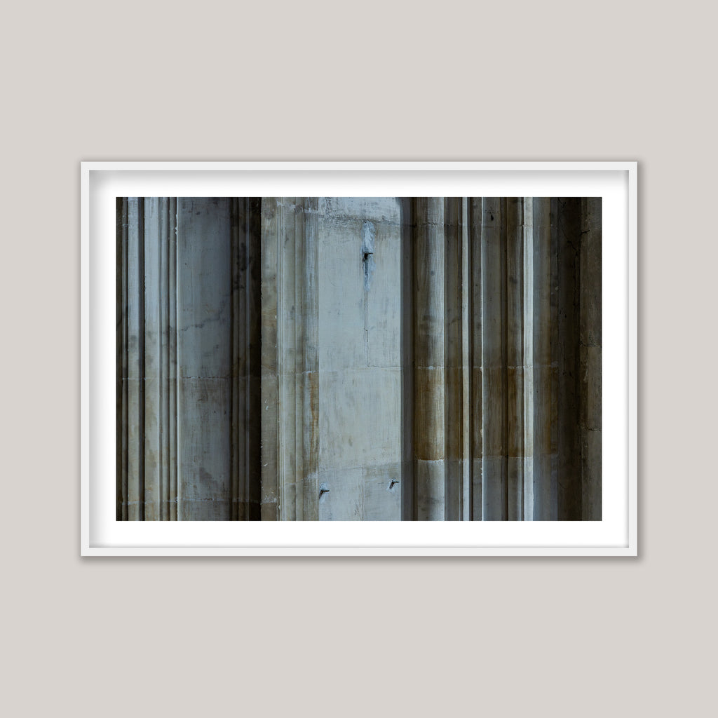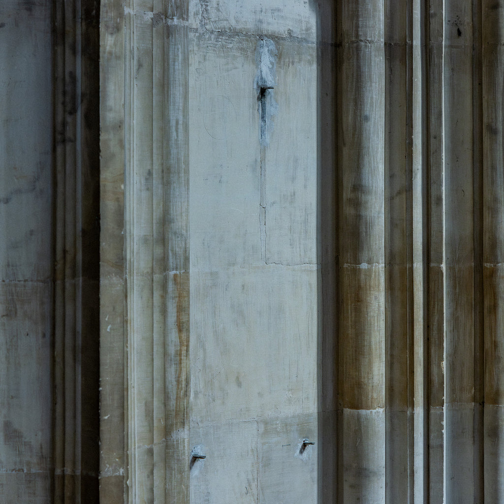September sunlight fills the interior of the Cathedral of the Holy Cross of Orléans (Cathédrale Sainte-Croix d’Orléans), France. Though warm within, a coolness drifts across the grand stone pillar. Light and shadow softly delineate its chisel-hatched surface, revealing a painterly texture at its finest. In the centre, the column hints at an absent form - a quiet mystery within the stillness.