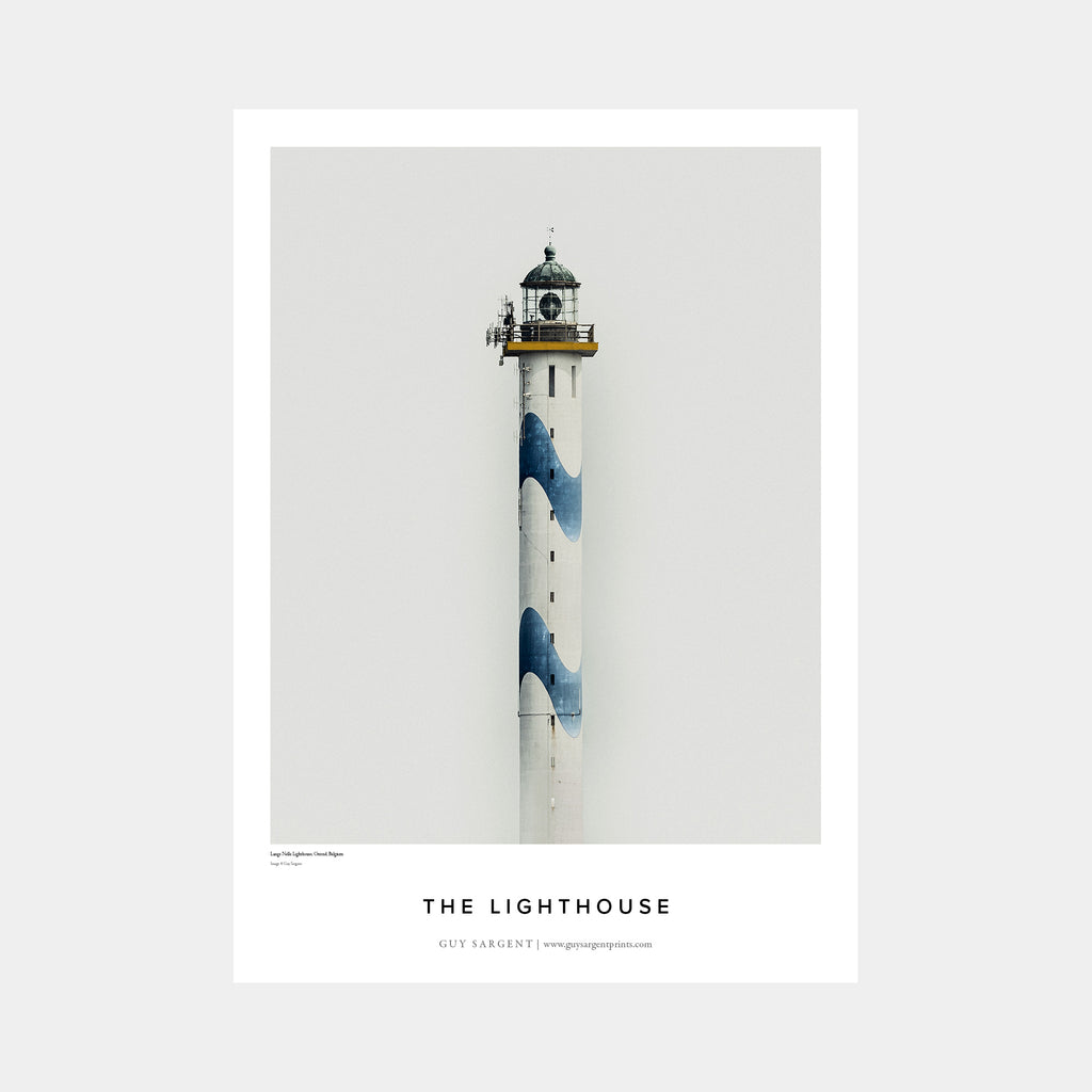 A minimal image of the Lange Nelle Lighthouse in Ostend, Belgium.